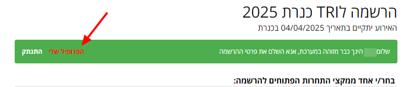 לאחר ההרשמה ניתן לשנות פרטים אישיים ע"י התחברות בטופס ההרשמה ולחיצה על "הפרופיל שלי"